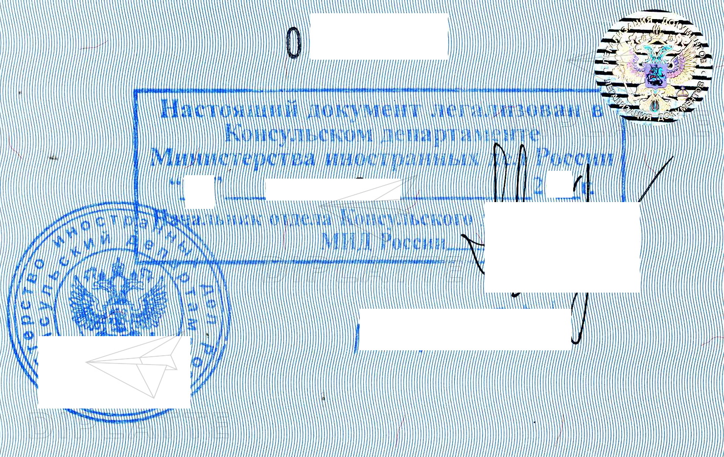Затем надо сделать печати и подписи представителя Консульского департамента МИД в РФ.