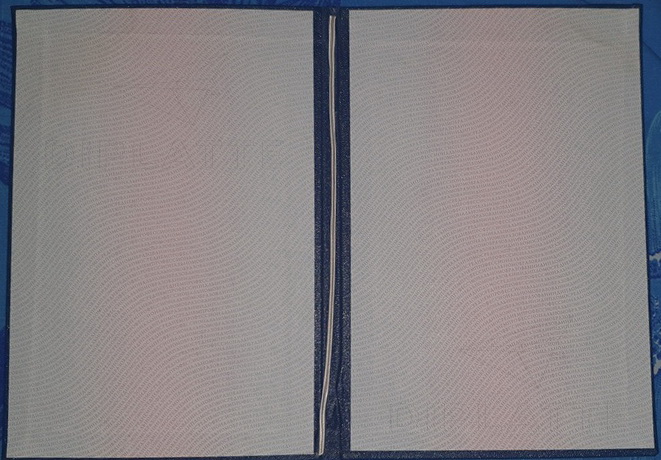 Изменения по сравнению с предыдущим бланком были незначительные — титульный лист который вклеивался в корочку теперь просто кладётся под верёвочку. Это было сделано чтобы полностью отказаться от рукописного заполнения документа. Теперь от руки ставятся только подписи. Остальное заполнение выполняется на принтере.