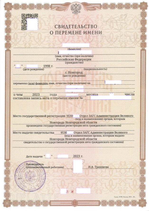 Если вы ищите где делают качественные документы ЗАГС и пришли купить свидетельство о перемене имени, то вы по обратились по адресу. Мы уже 20 лет занимаемся изготовлением документов. Диплатте — это бренд, который знают многие. И у нас есть много благодарных отзывов о нашей работе с самого начала работы этого замечательного сайта.